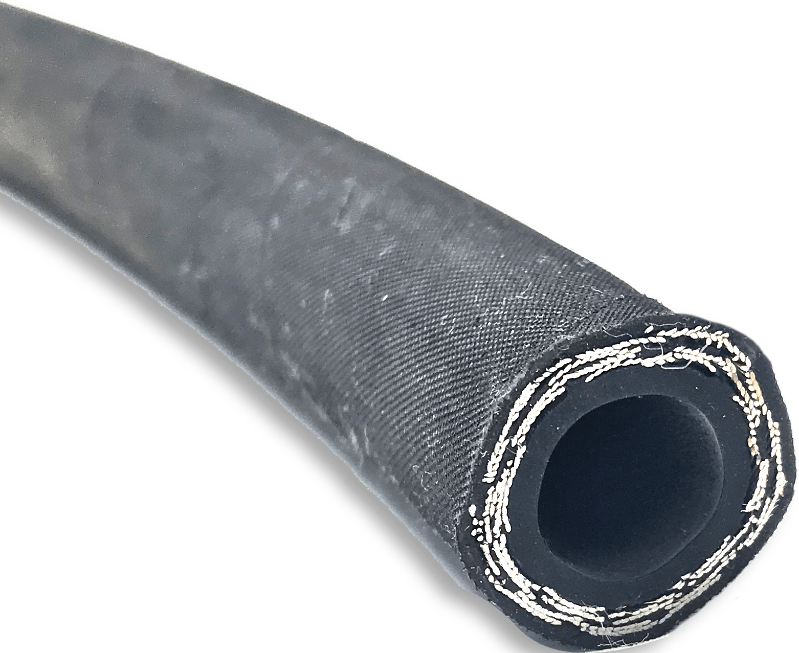 Tubo de borracha sintética resistente ao óleo, reforço de quatro tramas de aço de alta resistência com cobertura de borracha sintética resistente a ozônio, hidro carbono e abrasão.